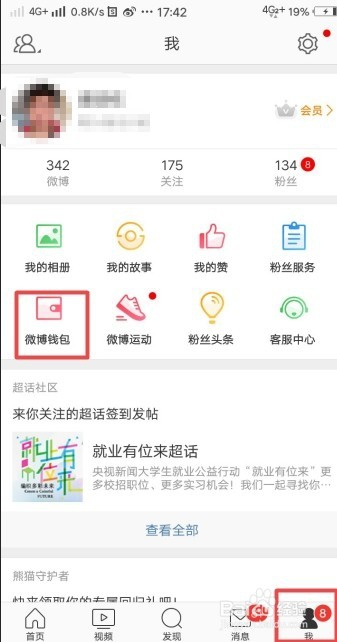 打开微博,点击右下角的【我】进入小我本家儿页,之后点击【微博钱包】。