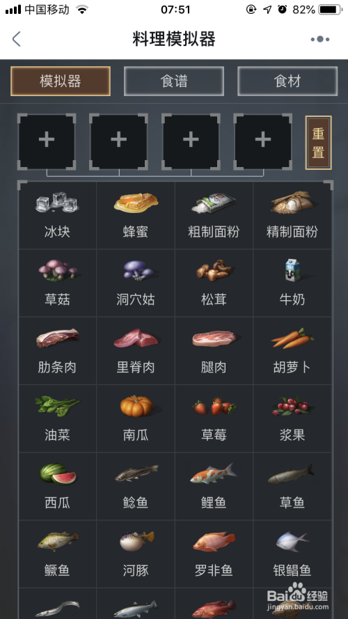 点击食谱,可以快速查看当前已经发现的所有食谱,对照食谱在游戏中可以快速弄出多种摒挡。