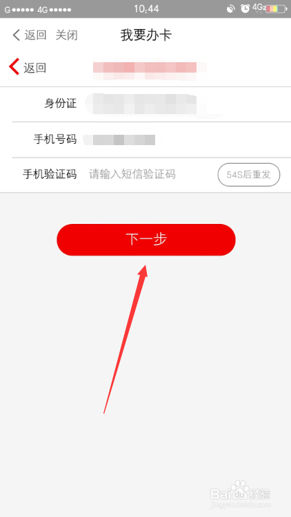 在手机上打开APP进入首页,首页点红箭头指标的目的功能我要办卡。