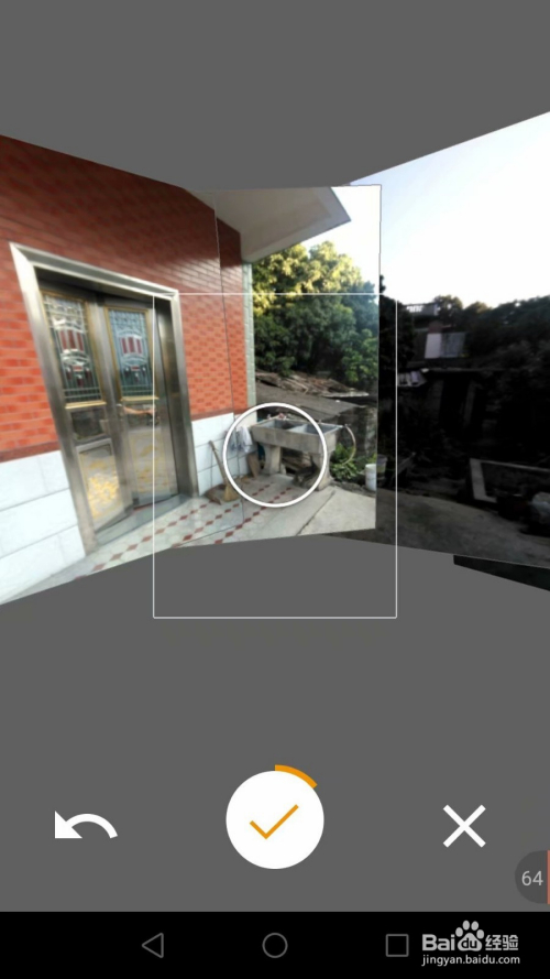 拍摄完当作后,点击中间的打勾,拍完后,APP会主动合当作保留全景图到手机相册中。