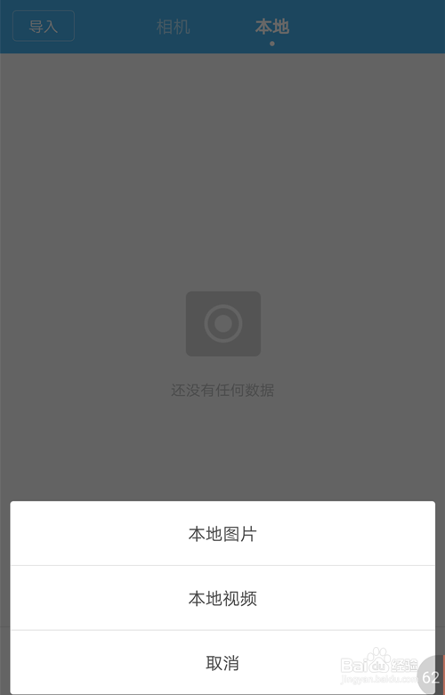 打开软件,可以看到页面上有相机和当地,导入等。点击导入,可以看到当地图片,点击一下上传。