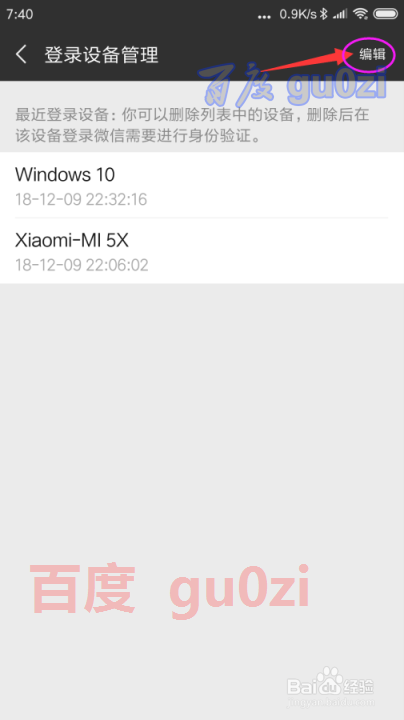进入该项后,可以看到之前登录的设备列表,从右上角进入编纂状况,