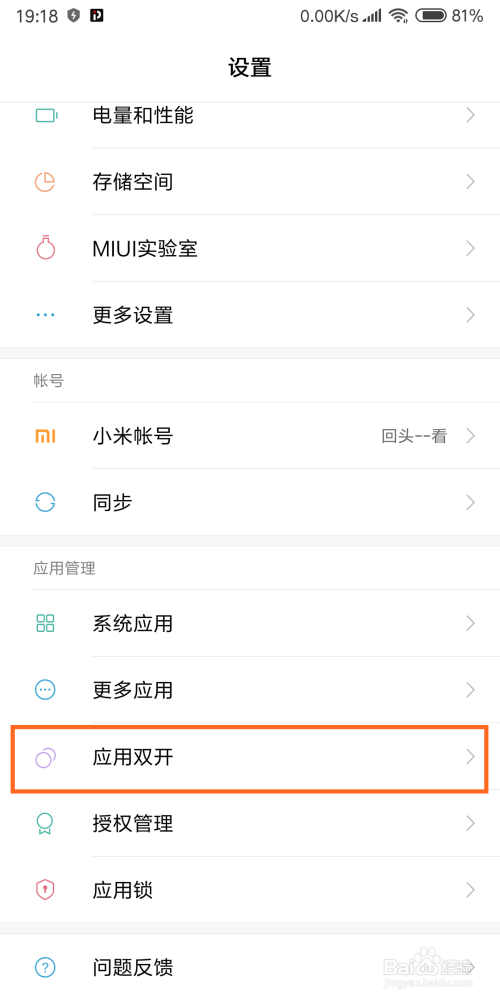 往下拉,找到应用双开,点击一下。