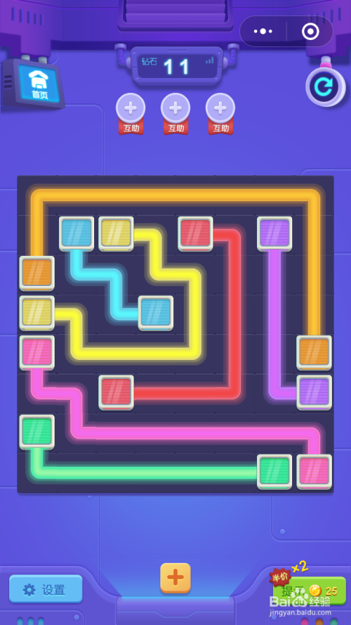 钻石第11关按照下图中所示连线就能过关。