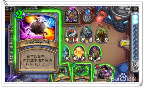 第二步,接着,将手中2费的年夜法师的睿智牌打出,使到手中神通牌不再耗损法力值。