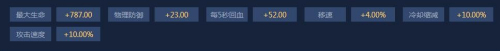 总属性:最年夜生命+787,物理防御+23,每5秒回血+52,移速+4%,冷却缩减+10%,进犯速度+10%。