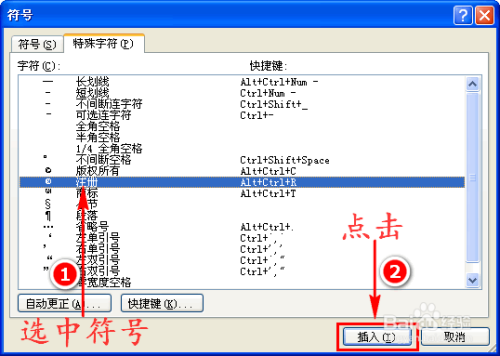 在对话窗中我们选择“特别字符”进入其界面,然后在界面中我们就能找到这些符号。如图所示: