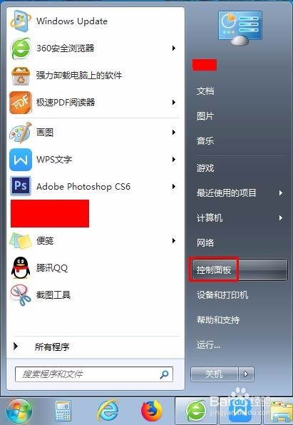 第三步:在电脑桌面“起头”中打开“节制面板”。