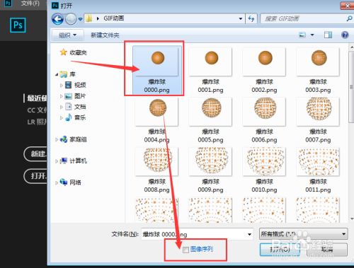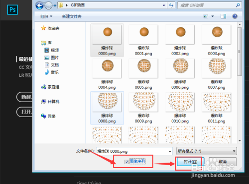 选中图像序列,然后点击右侧的打开