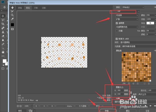 然后打开文件中的存储为web所用格局,选择gif格局,设置大小和轮回体例将动画导出。