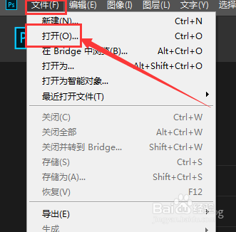 然后打开PS软件,在文件菜单中选择第二个选项打开设置