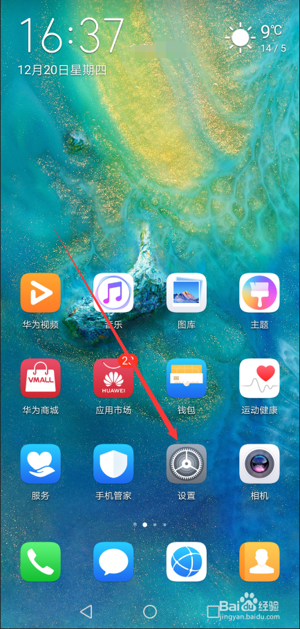 打开华为mate20 pro手机后,直接点击桌面上的【设置】图标,如下图所示。