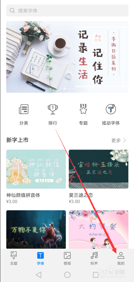 进入华为mate20 pro字体界面后,直接点击底部的【我的】,如下图所示。