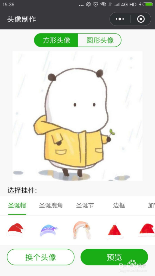这时辰在头像下方会呈现挂件选择,我们选择圣诞帽。