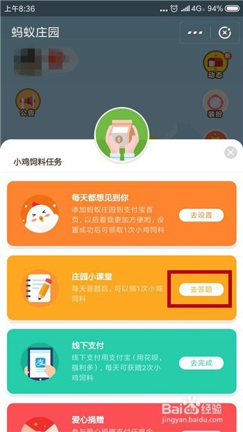 接下来在蚂蚁庄园中找到庄园小讲堂,点击底部【领饲料】。
