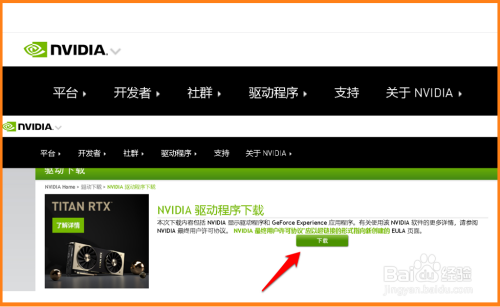 接着打开一个NVIDIA - 驱动法式下载的页面,我们点击:下载;