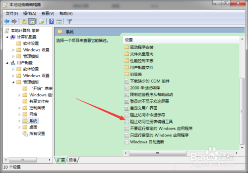 在右侧本家儿窗口中找到“阻止拜候注册表编纂东西”;