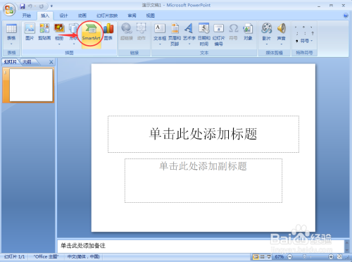 在呈现的插入东西中找到并点击一下SmartArt;