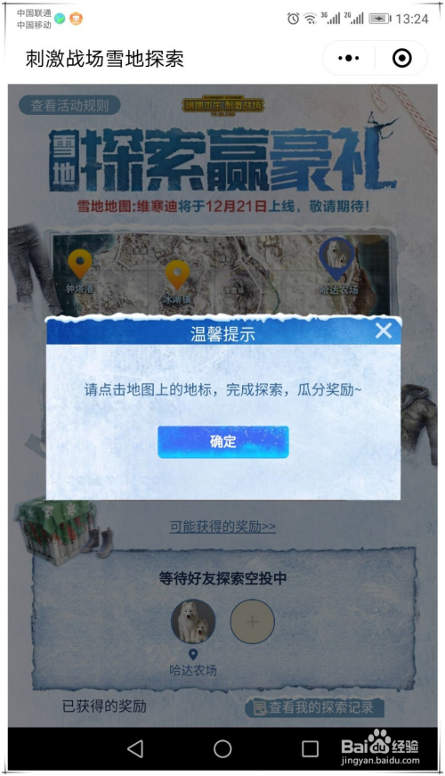 这新网页上的地图 中,有六个空投点可供摸索,每个微旌旗灯号天天可摸索一次。摸索当作功,会有丰厚的道具奖励。