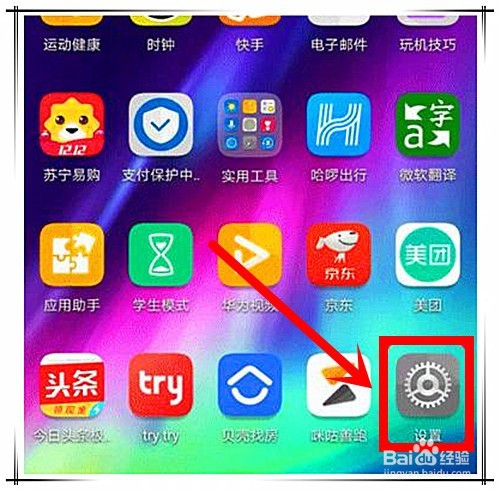 第一步,解屏手机,在桌面上点击进入“设置”选项。