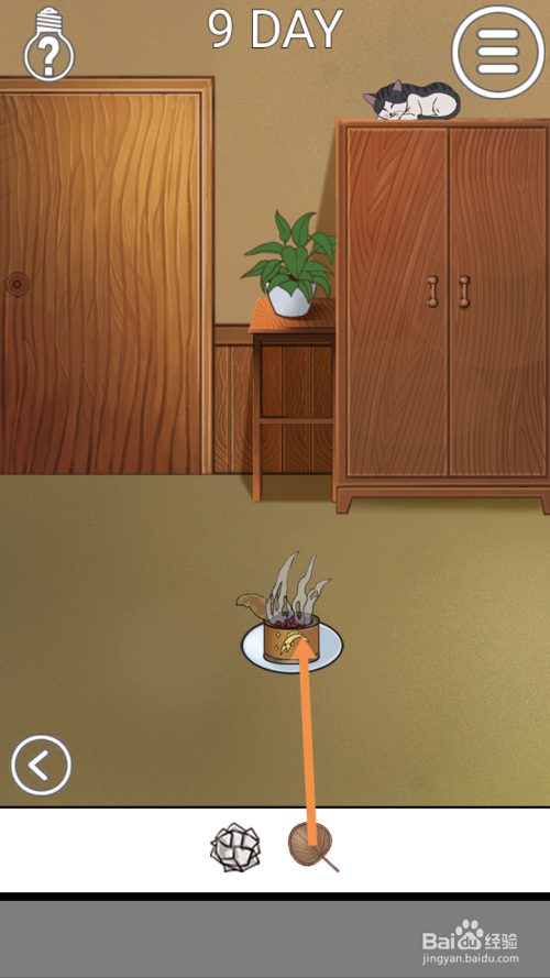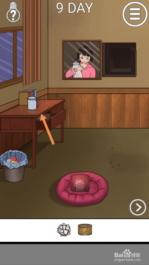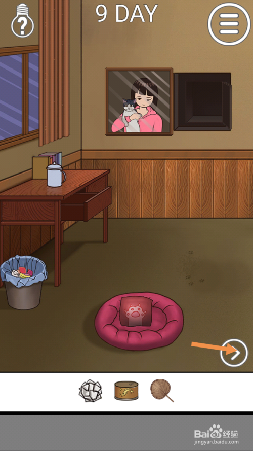 抽屉打开后,点击扇子,然后点击标的目的右箭头,进入右边的房间。