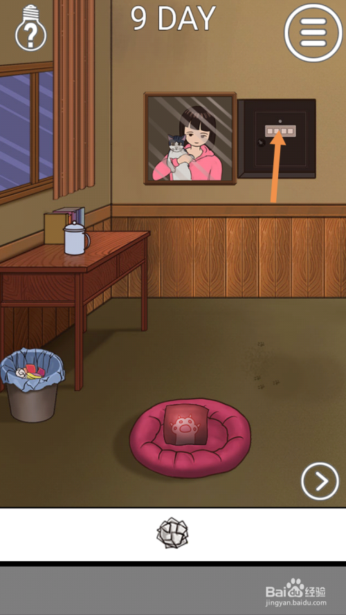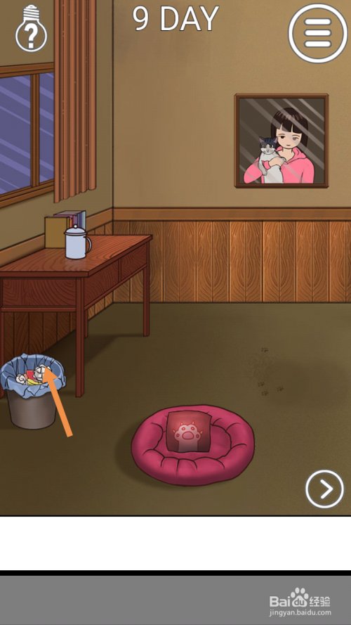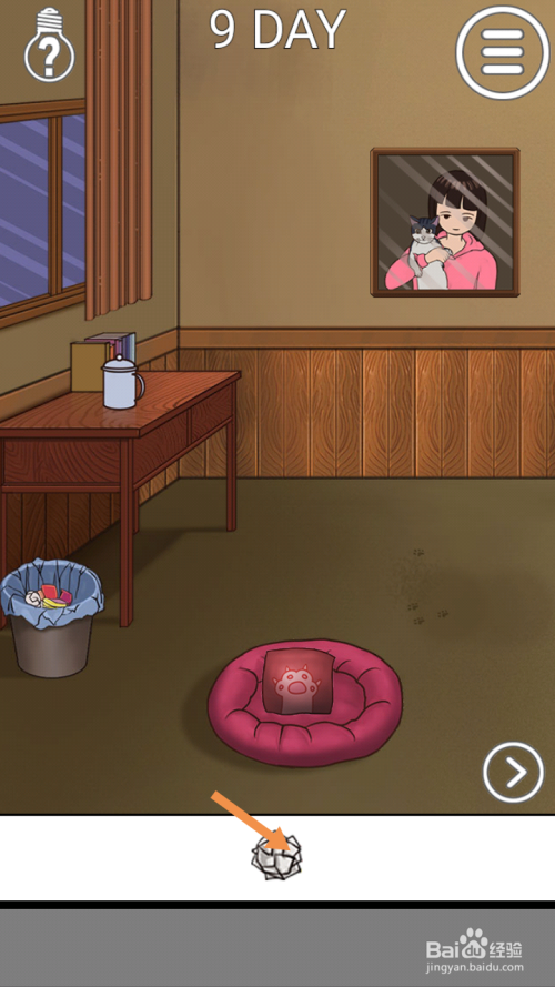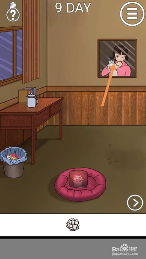 在左边房间里,点击垃圾桶里的一团纸,然后点击这团纸。