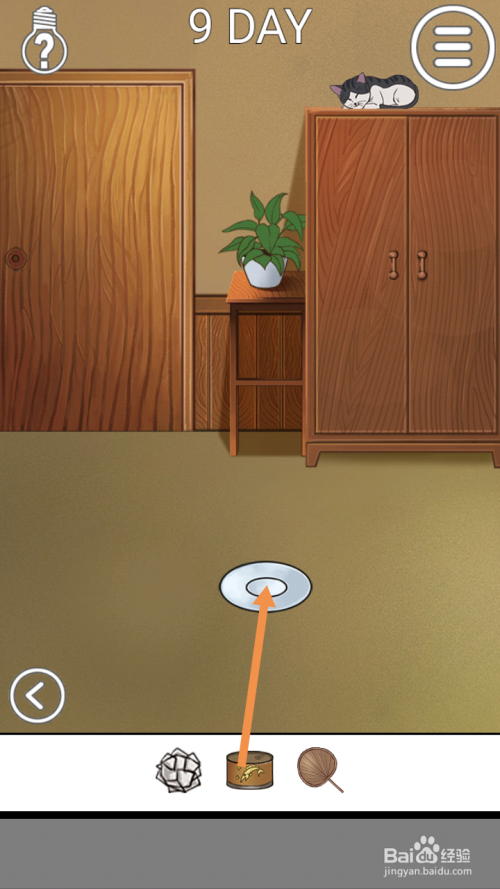 在右边房间里,将罐头拖动到盘子上,然后将扇子拖动到罐子旁。