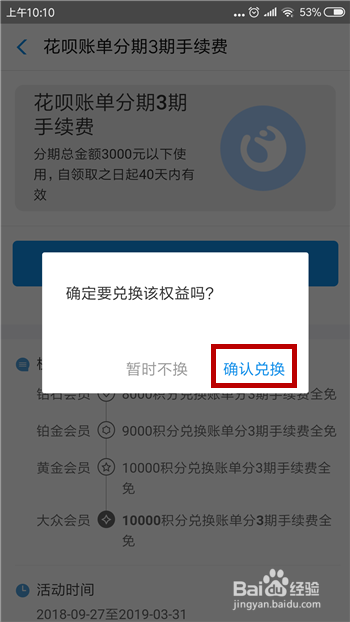 如许我们就会当作功兑换了,这时利用花呗分期就不会有手续费了。