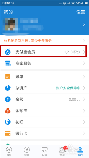 在我的界面中找到并点击【付出宝会员】功能。