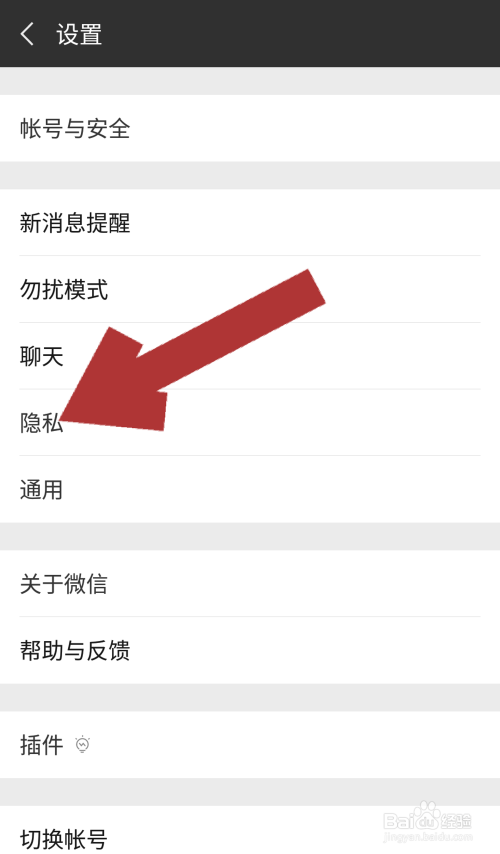 在微信的设置页面点击“隐私”一栏,进入微信的隐私设置页面。
