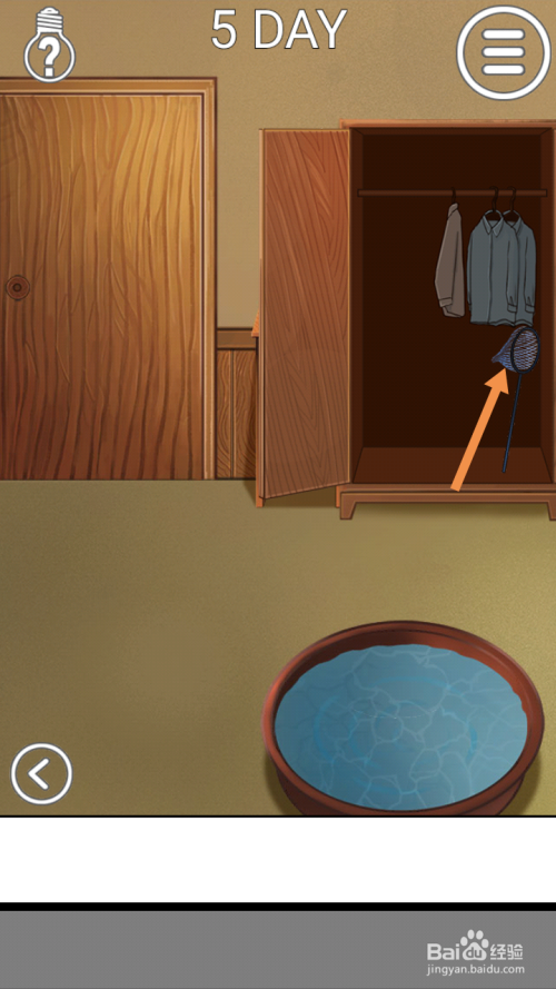 第5关点击右边柜子门,然后点击捞网。
