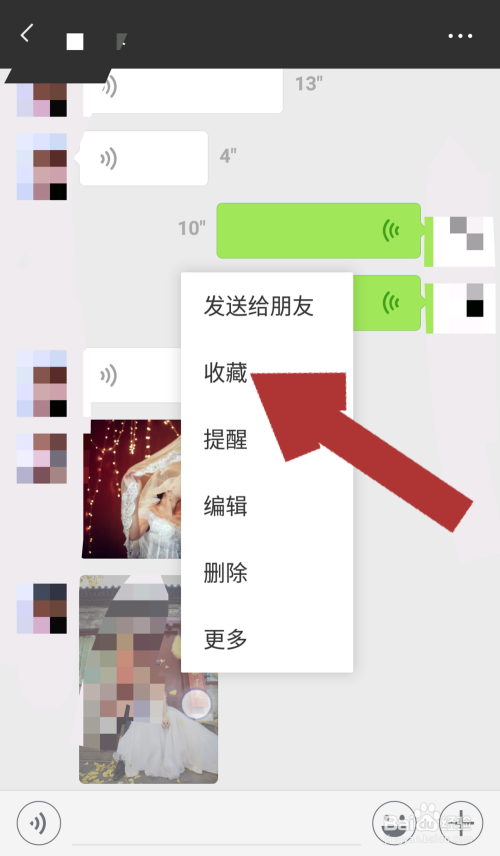 长按图片后,在图片后方会呈现对应的操作功能选项,点击“保藏”,聊天页面下方会显示“已保藏”。