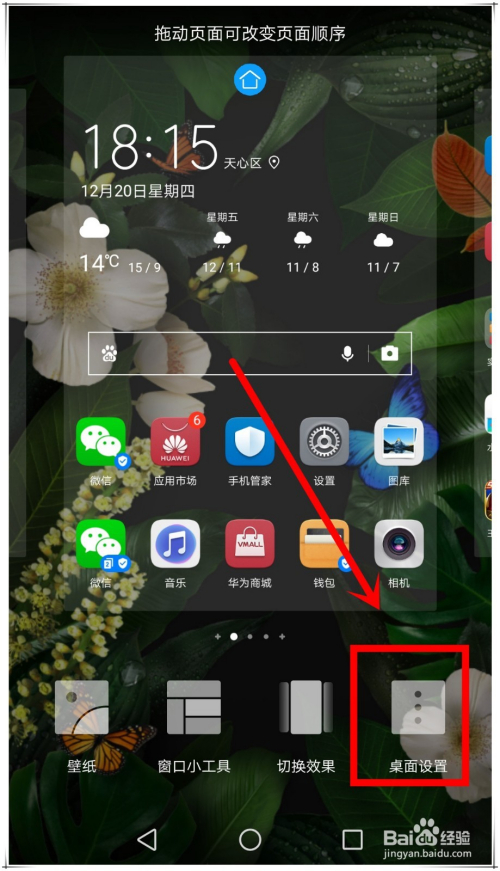 这时会进入桌面设置模式,然后在屏幕中点击如下图所示的按钮,即可直接桌面设置窗口。