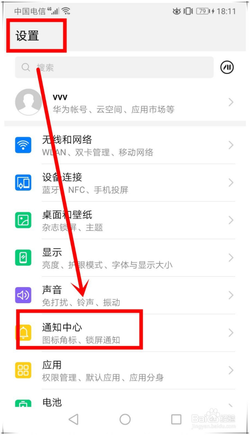 可以有两种方式,首先是传统的方式,首先依次点击“设置”——“通知中间”。