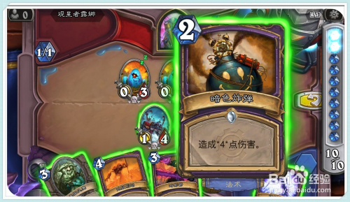 第一步,我们先将手中2费的暗色炸弹打出,将对面此中一个龙蛋覆灭失落,触发亡语,获得一个魔暴龙。