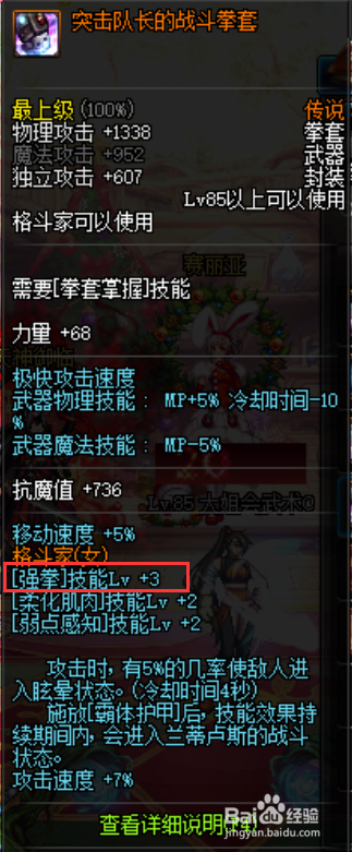 兵器保举“突击队长的战斗拳套”(技术Lv +3),还可以带以下装备“未完当作的研发者臂铠 ”(技术Lv +2)、“卡露亚的教诲-碎日” (技术Lv +2)这个可以在拍卖行上买。