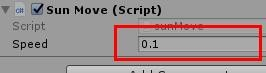 - 太阳活动的剧本必然要挂在偏向光物体上,若是感觉太阳移动速度太慢可以调整speed速度的值。