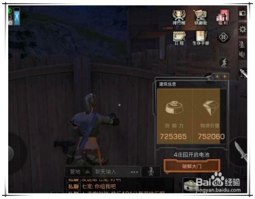 明日之后钩索利用第二步:然后,找一户家园,强行进入或操纵电池破解进入家园。
