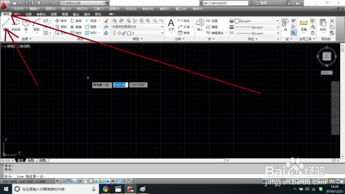 在画图下面的点击正交模式,然后在菜单栏中点击常用中的画图栏中和直线画图东西再次在画图窗口中进行绘制。