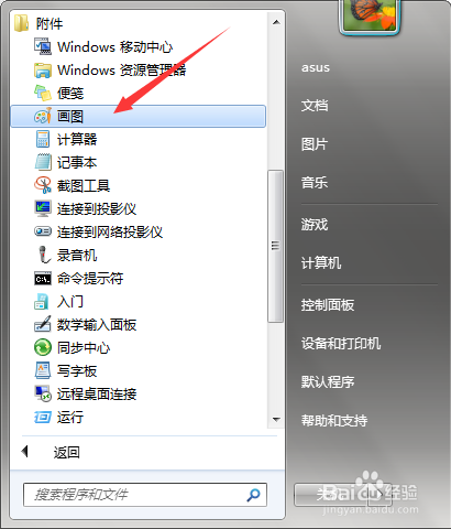 打开电脑上的绘图软件:起头—所有法式—附件—绘图。