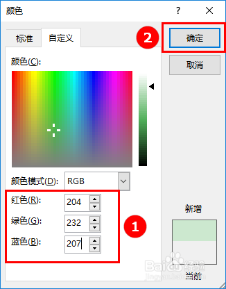 接着在“自界说”界面的中,将红色值设定为204,绿色值设定为232,蓝色值设定为207,最后点击“确定”按钮,如许页面颜色就酿成豆沙绿啦!如图所示: