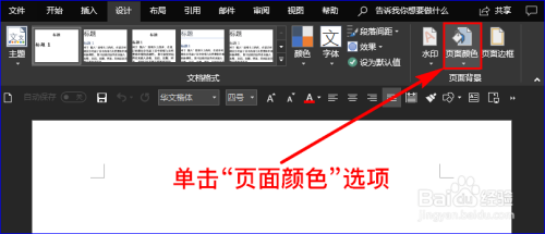 首先我们单击本家儿菜单中的“设计”,并在其子项中找到“页面布景”组。如图所示: