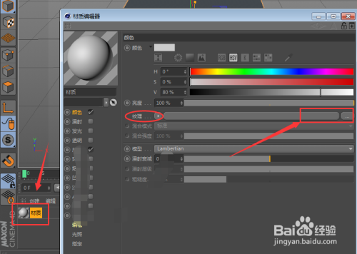 建立材质,在材质面板的纹理选项栏,添加需要的图片