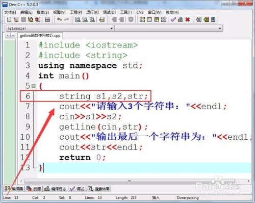 若是要输入第3个字符串,只需再执行一次getline函数。
