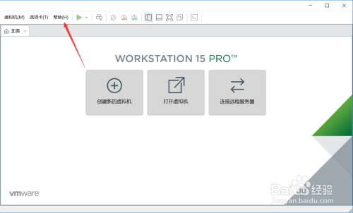 直接双击安装好的VMware Workstation 15图标打开,然后点击VMware15导航上面的【帮忙】,如下图所示。