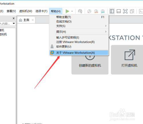 然后在点击弹出下拉菜单里的【关于VMware Workstation】选项,如下图所示。