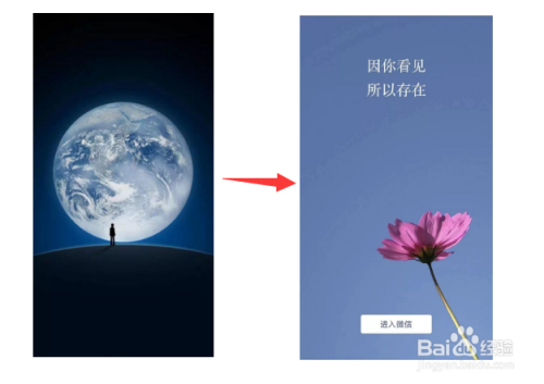 更新完微信初次登岸,经典的地球小人图片不见了,换当作了一朵小花花和一句“因你看见,所以存在”。