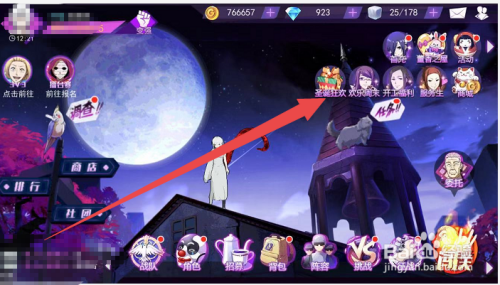 进入到游戏首页之后,点击下图所示位置中的“圣诞狂欢”活动按钮,进入到圣诞狂欢活动页面。