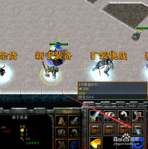 每次进级后,英雄在利用回城号令,然后在到新手装备NPC这里点击进入下一个锻造区域,如下图所示。