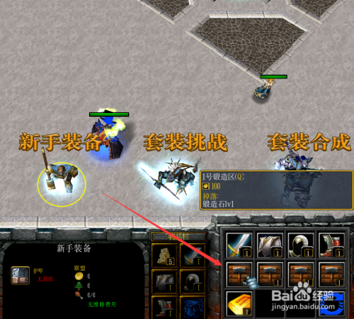 英雄直接拾取这里的锻造石后就可以把新手装备进级了,如下图所示。